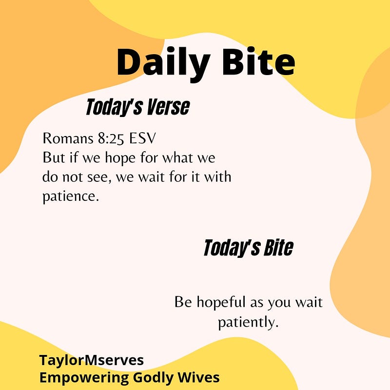 17. But if we hope for what we do not see, we wait for it with patience. Romans 8:25 ESV