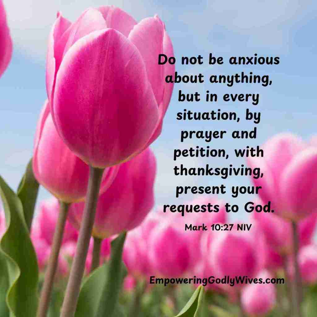 Do not be anxious about anything, but in every situation, by prayer and petition, with thanksgiving, present your requests to God. (Philippians 4:6 NIV)